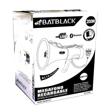 MEGÁFONO BATBLACK 200W BLUETOOTH 9 SIRENAS / 8 EFECTOS