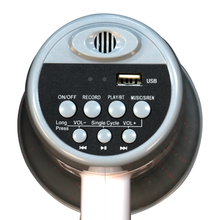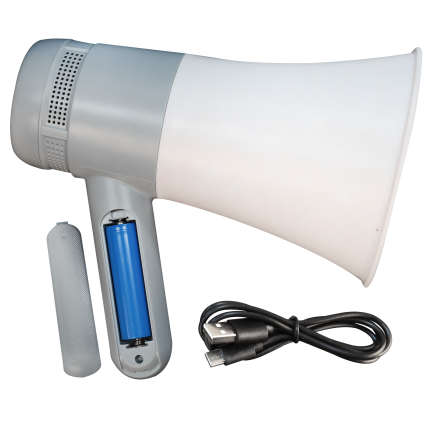 MEGÁFONO RECARGABLE BATBLACK 220W, USB, BLUETOOTH, CON GRABACION 100 SEG. BATERÍA 3.7X3 2200 MSH, IMPUT VOLTAJE DC 5V 1A-2A ENTRADA AUXILIAR ENTRADA DC 12V, CABLE TIPO C. SONIDO DE EMERGENCIA Y MUSICAL
