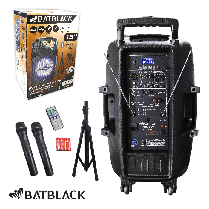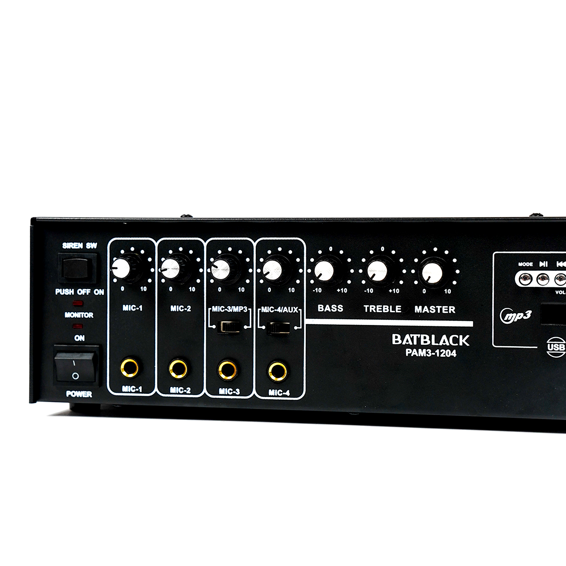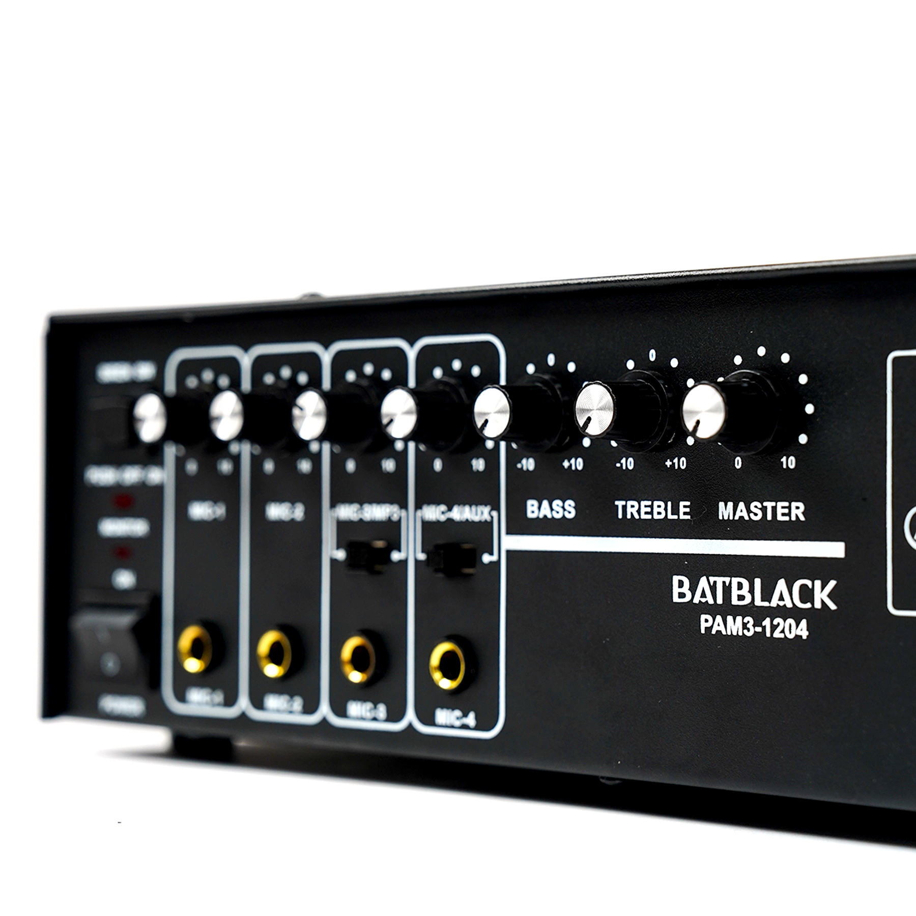 AMPLIFICADOR PROFESIONAL BATBLACK 120W P/4 MICROS AC 220V/60HZ MP3,USB,FM, BT C/SIRENA C/CONTROL