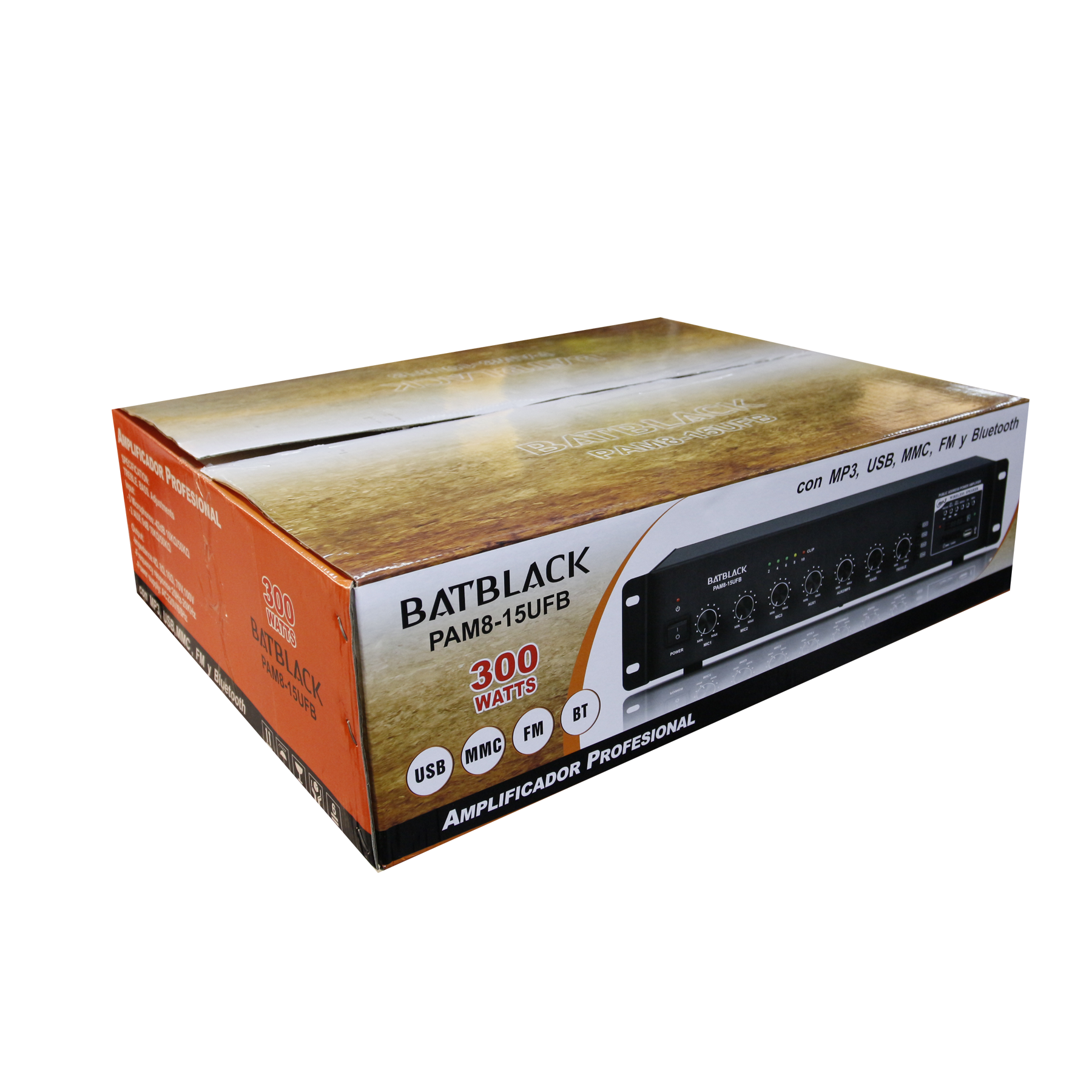 AMPLIFICADOR PROFESIONAL BATBLACK 300W P/3 MICROS AC 220V/60HZ MP3,USB,SD,FM,BT