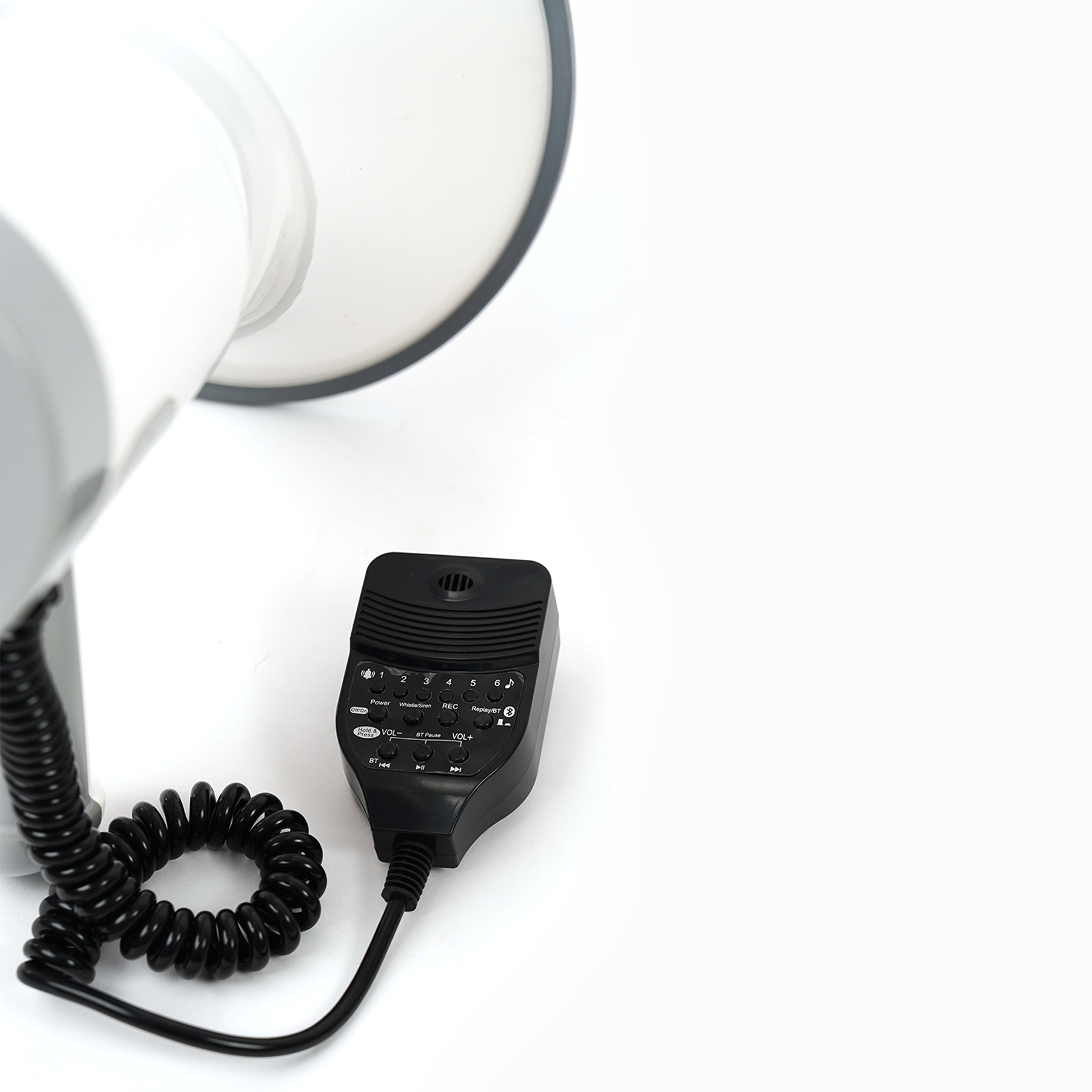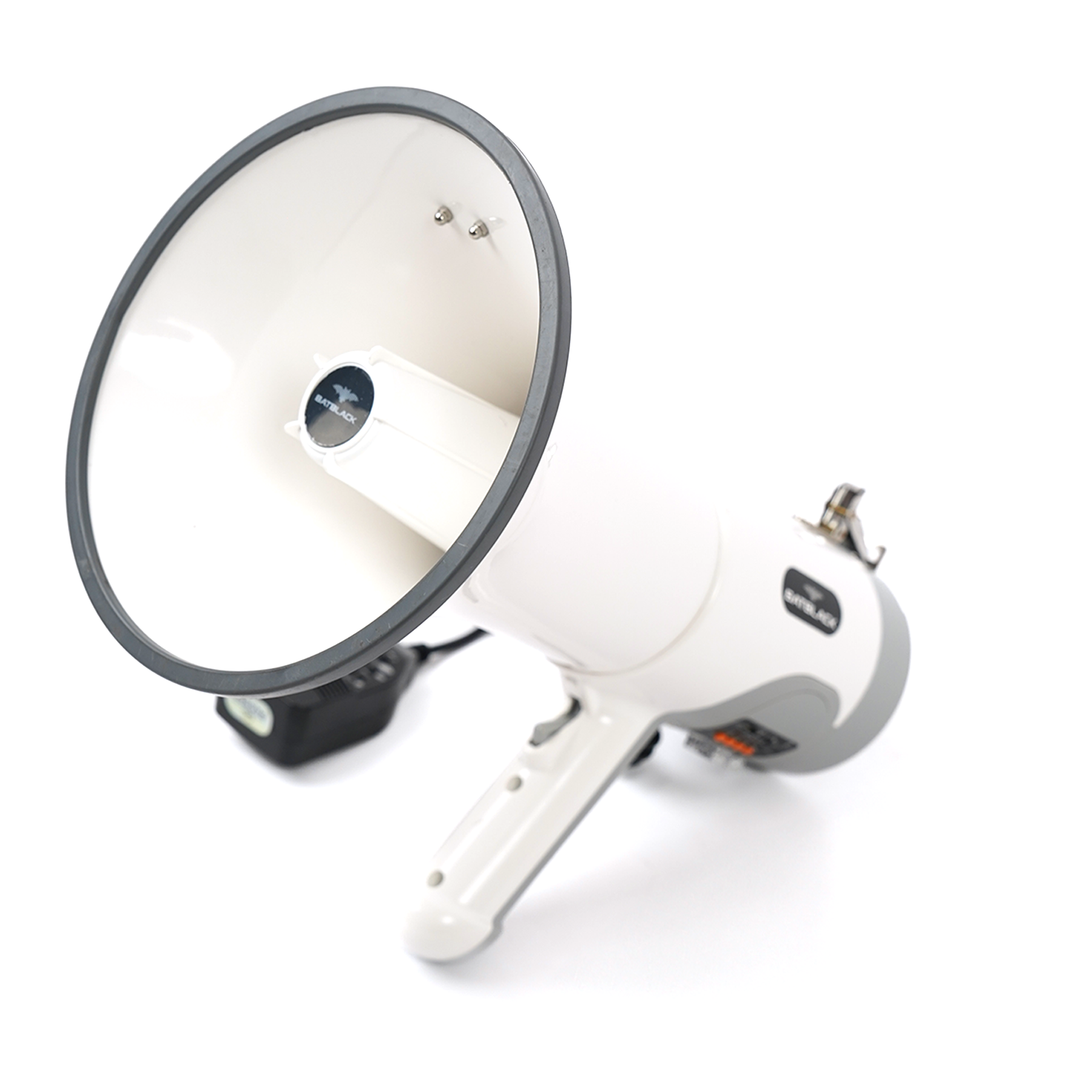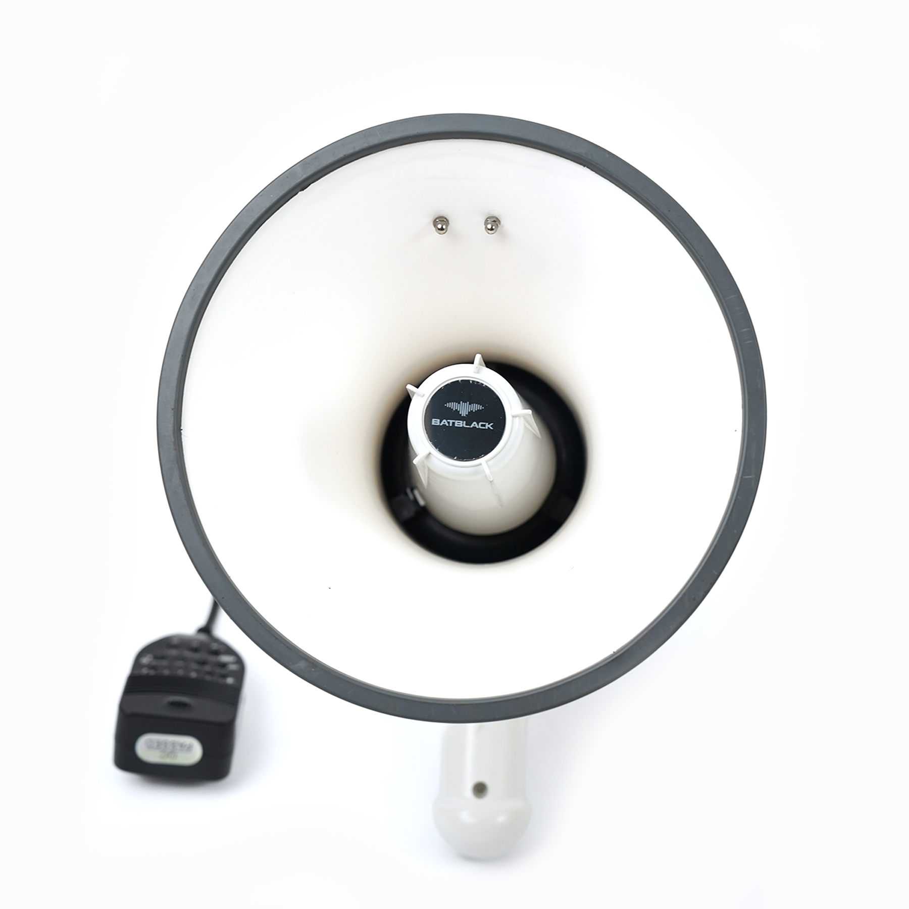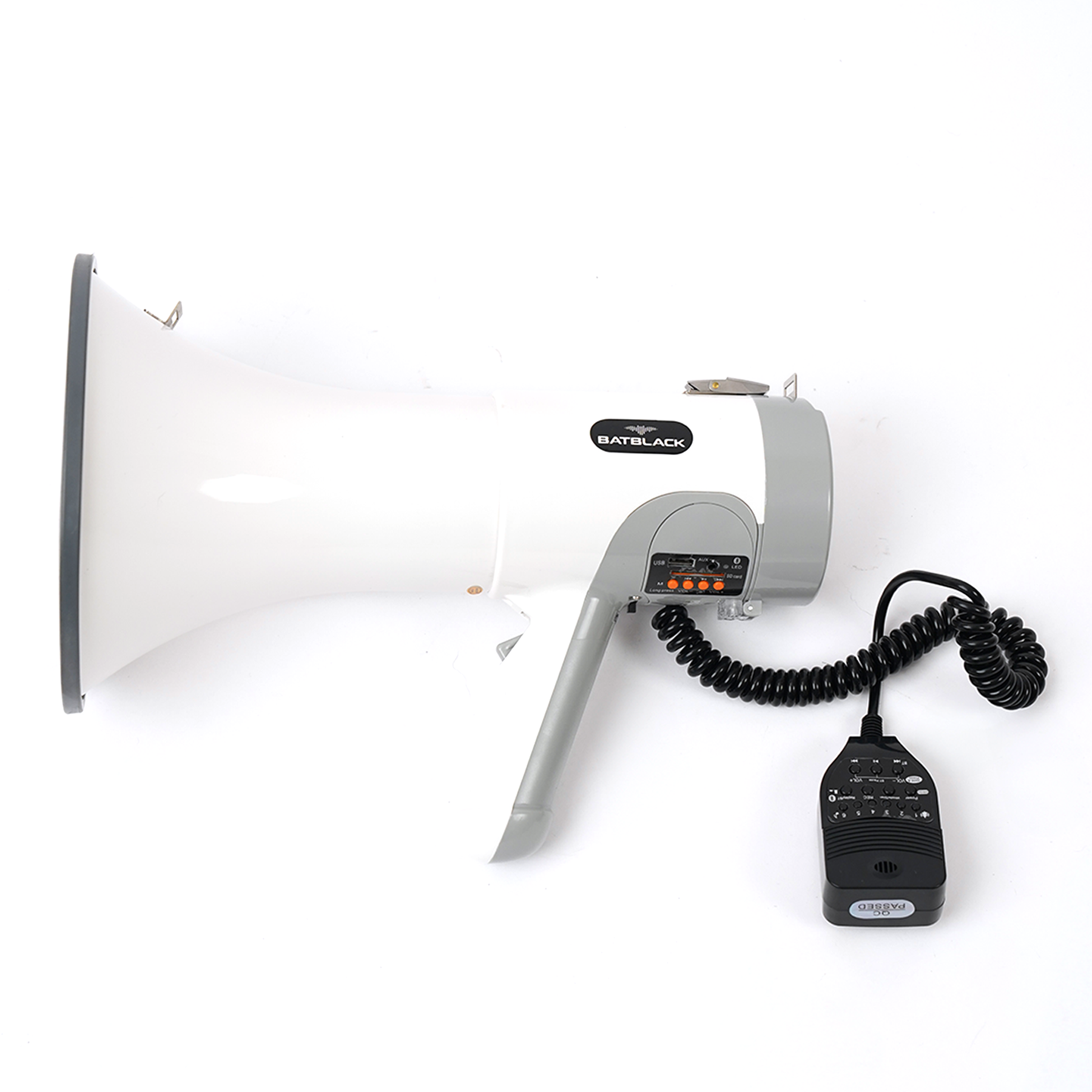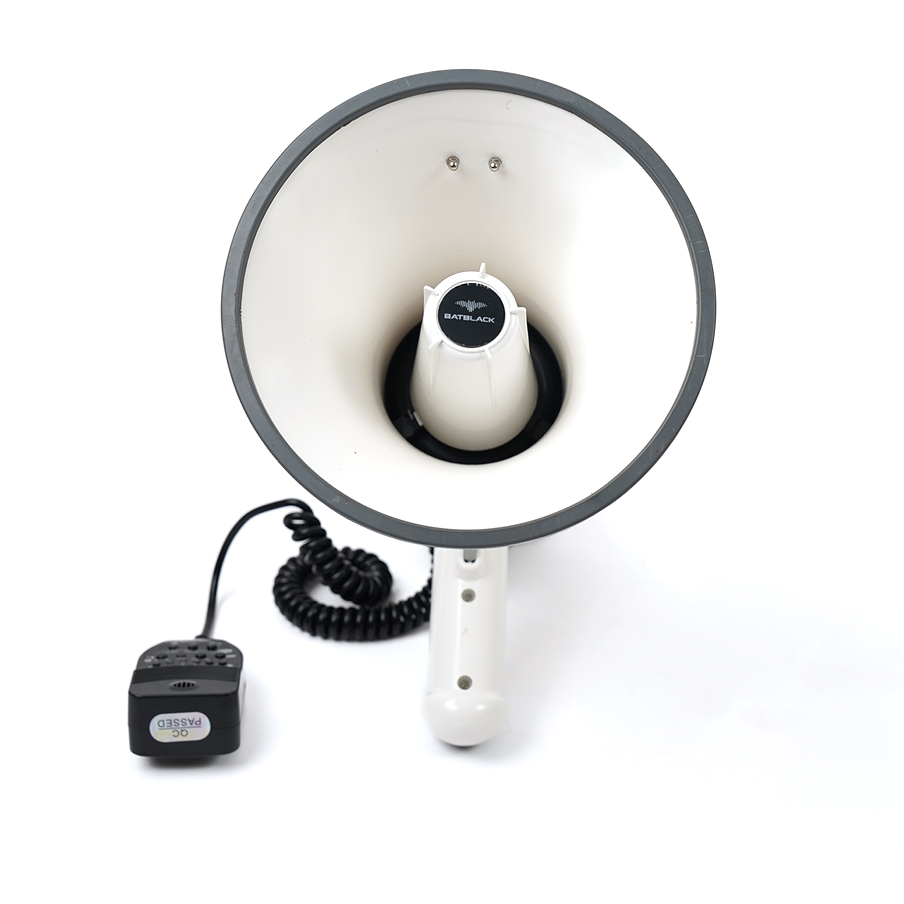 MEGÁFONO RECARGABLE BATBLACK 220W, USB, BLUETOOTH, CON GRABACION 100 SEG. BATERÍA 3.7X3 2200 MSH, IMPUT VOLTAJE DC 5V 1A-2A ENTRADA AUXILIAR ENTRADA DC 12V, CABLE TIPO C. SONIDO DE EMERGENCIA Y MUSICAL