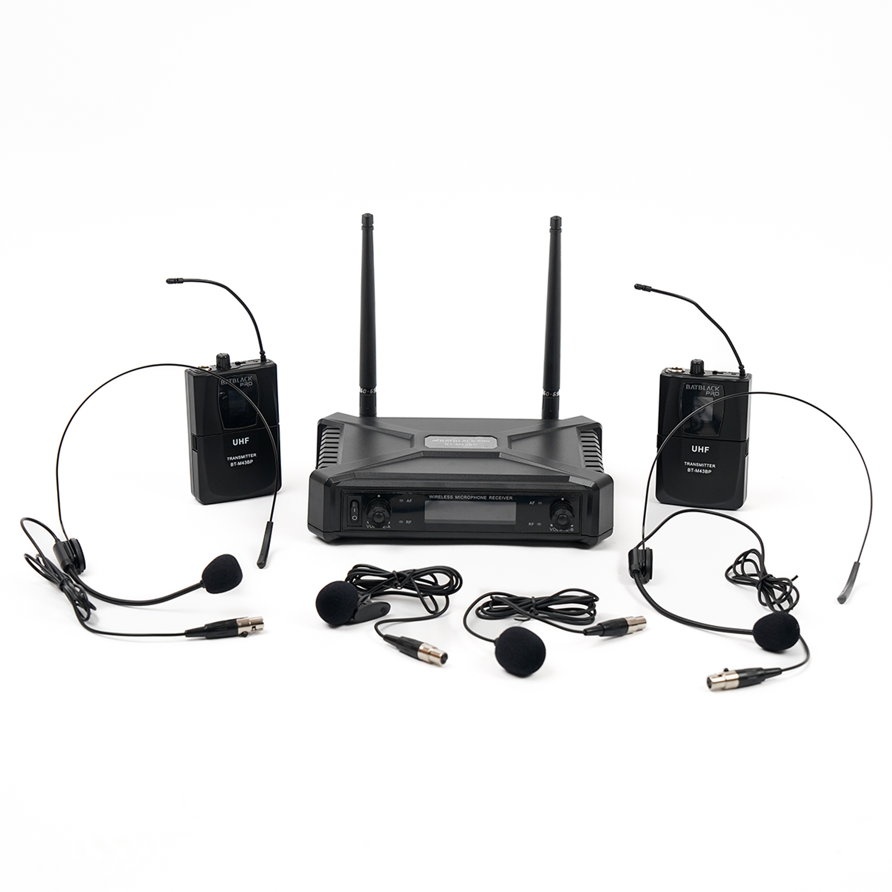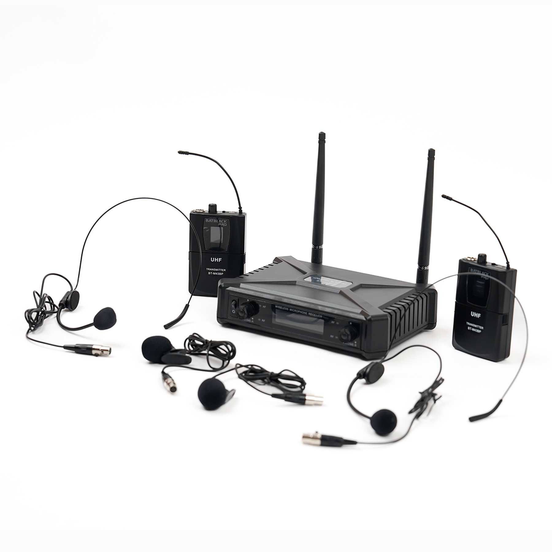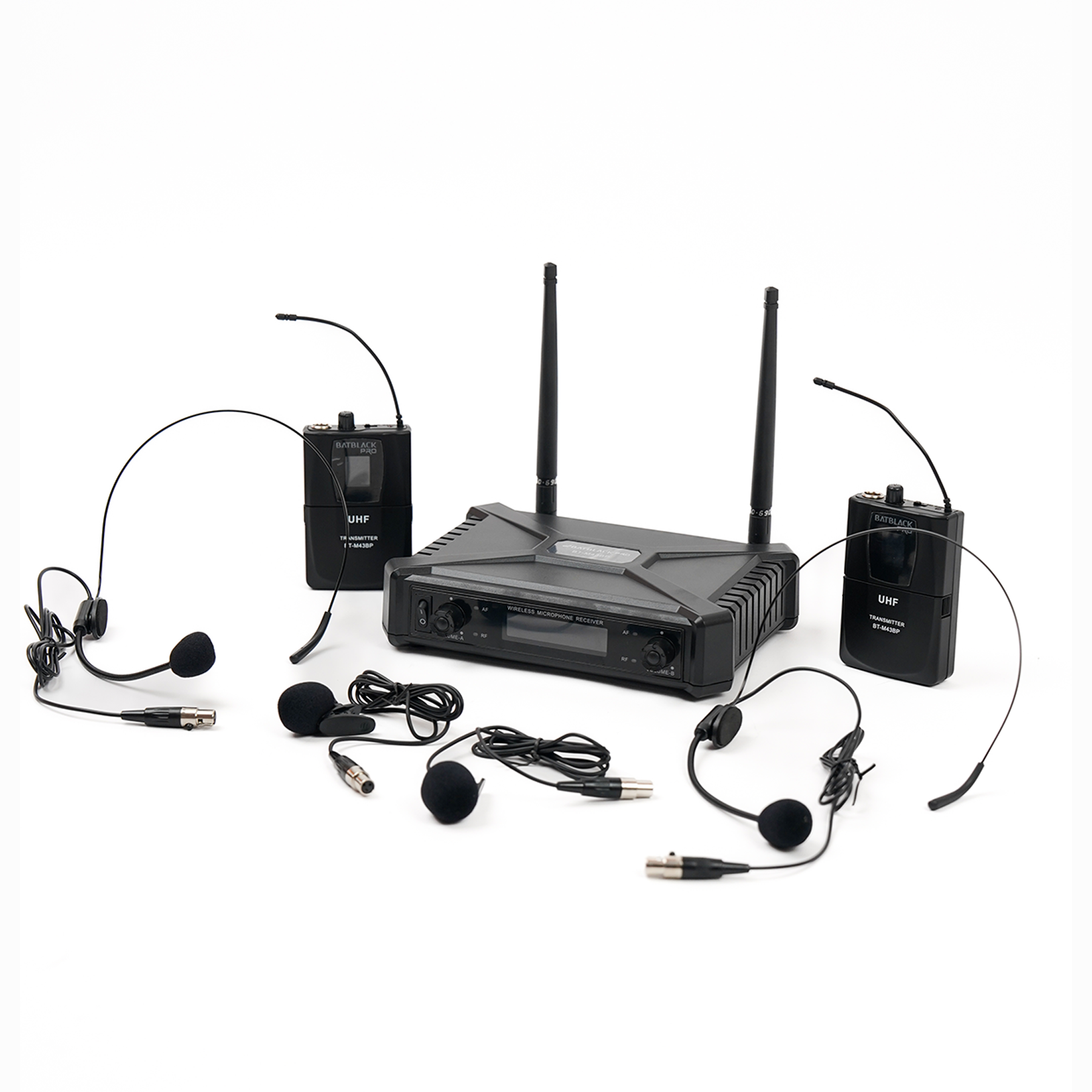 MICRÓFONO INALÁMBRICO BATBLACK UHF 2 VINCHAS Y 2 SOLAPEROS