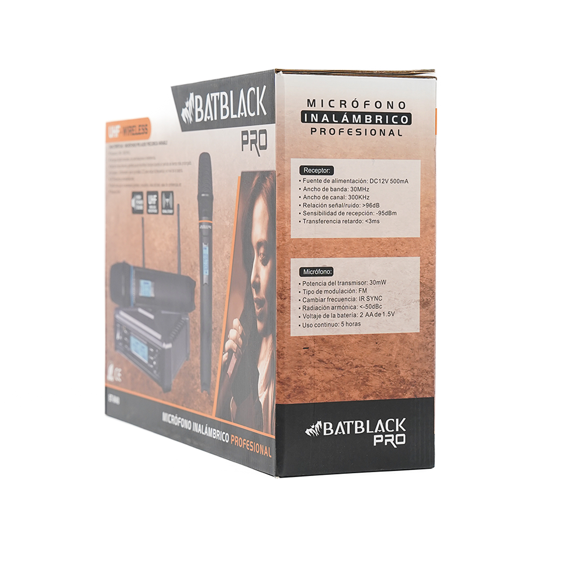 MICRÓFONO PROFESIONAL BATBLACK C/DISPLAY-IR INALÁMBRICO UHF DOBLE C/PANTALLA LCD, C/CAJA METAL