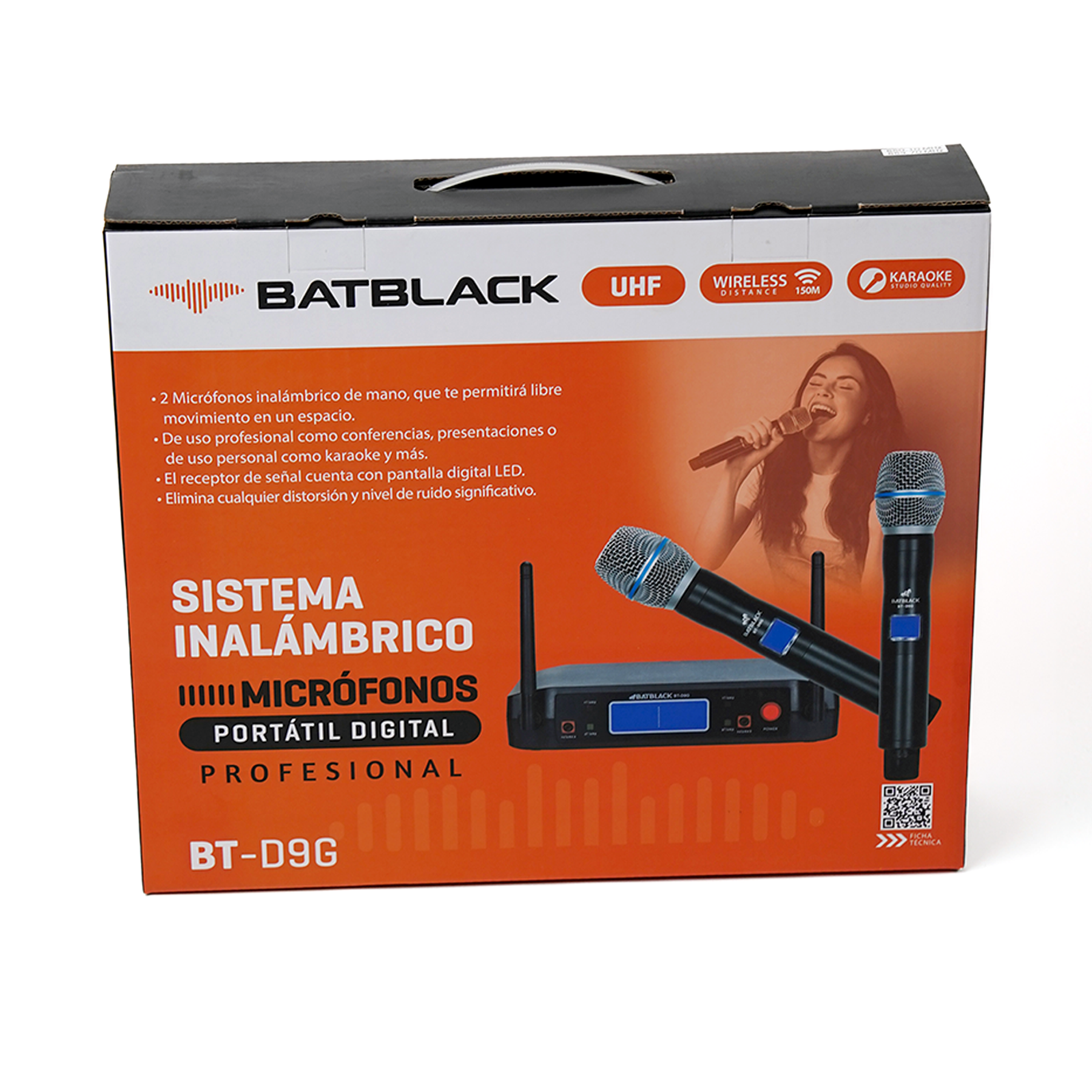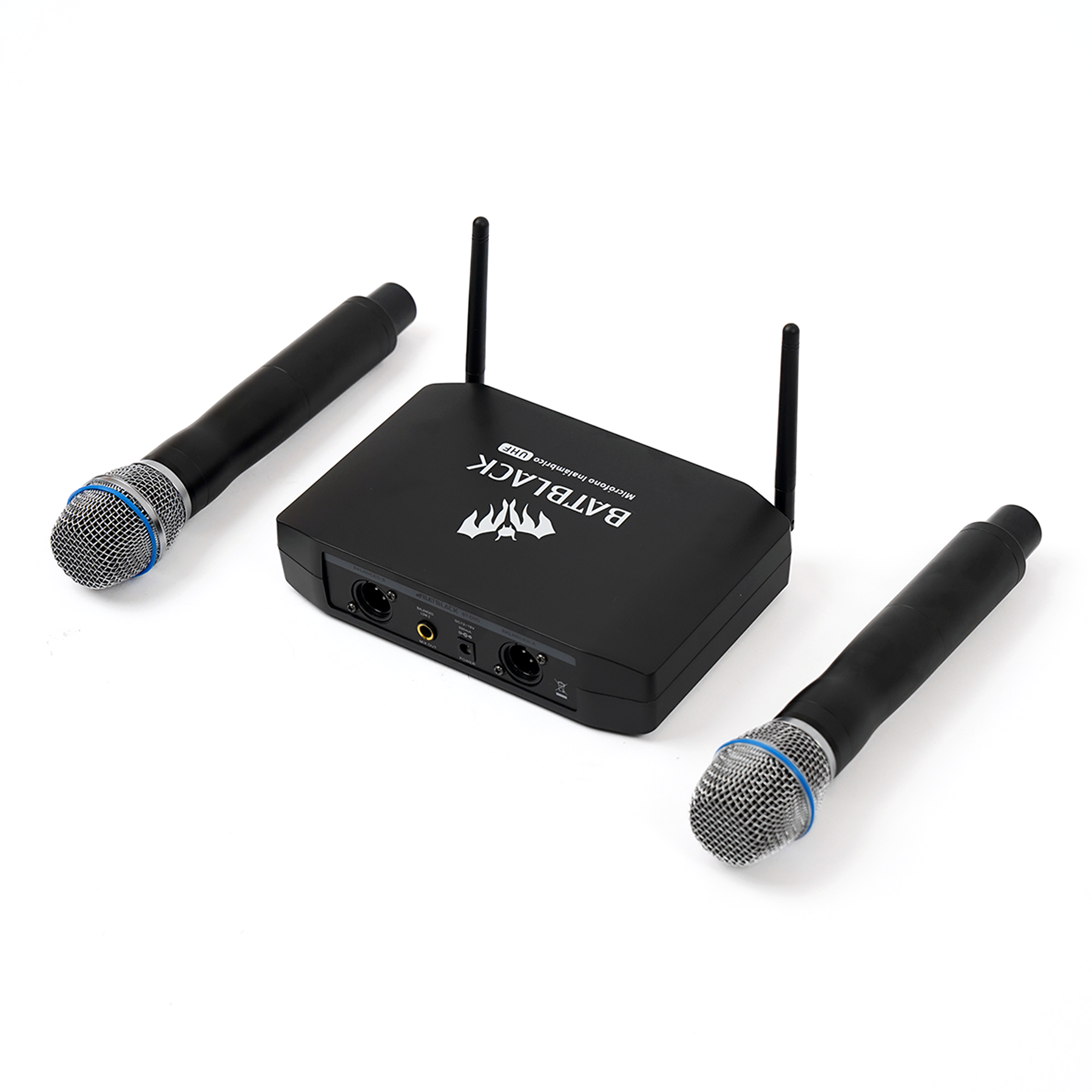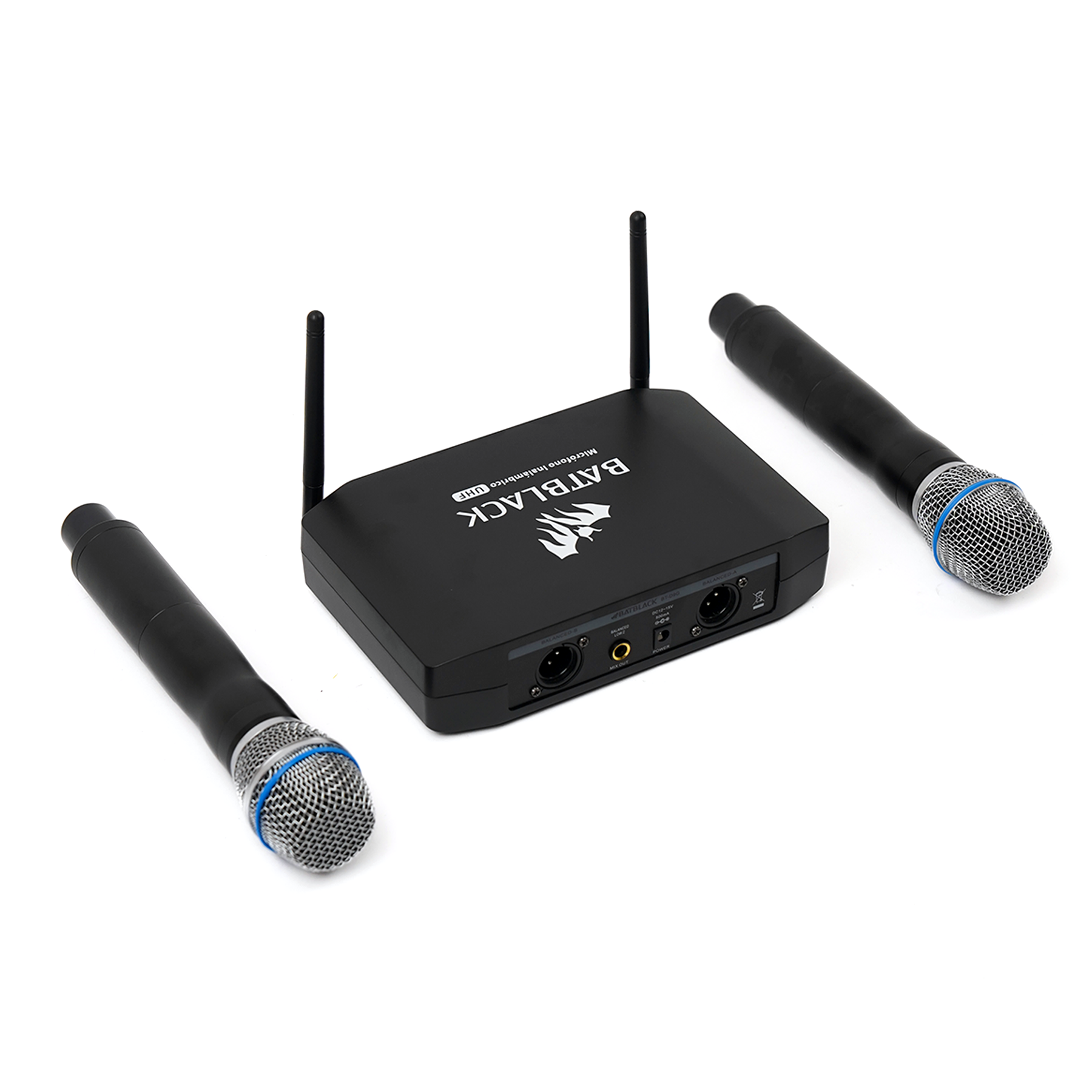 MICRÓFONO PROFESIONAL BATBLACK INALÁMBRICO UHF DOBLE , DOS MICRÓFONOS / MICRO METAL / RECEPTOR PLÁSTICO