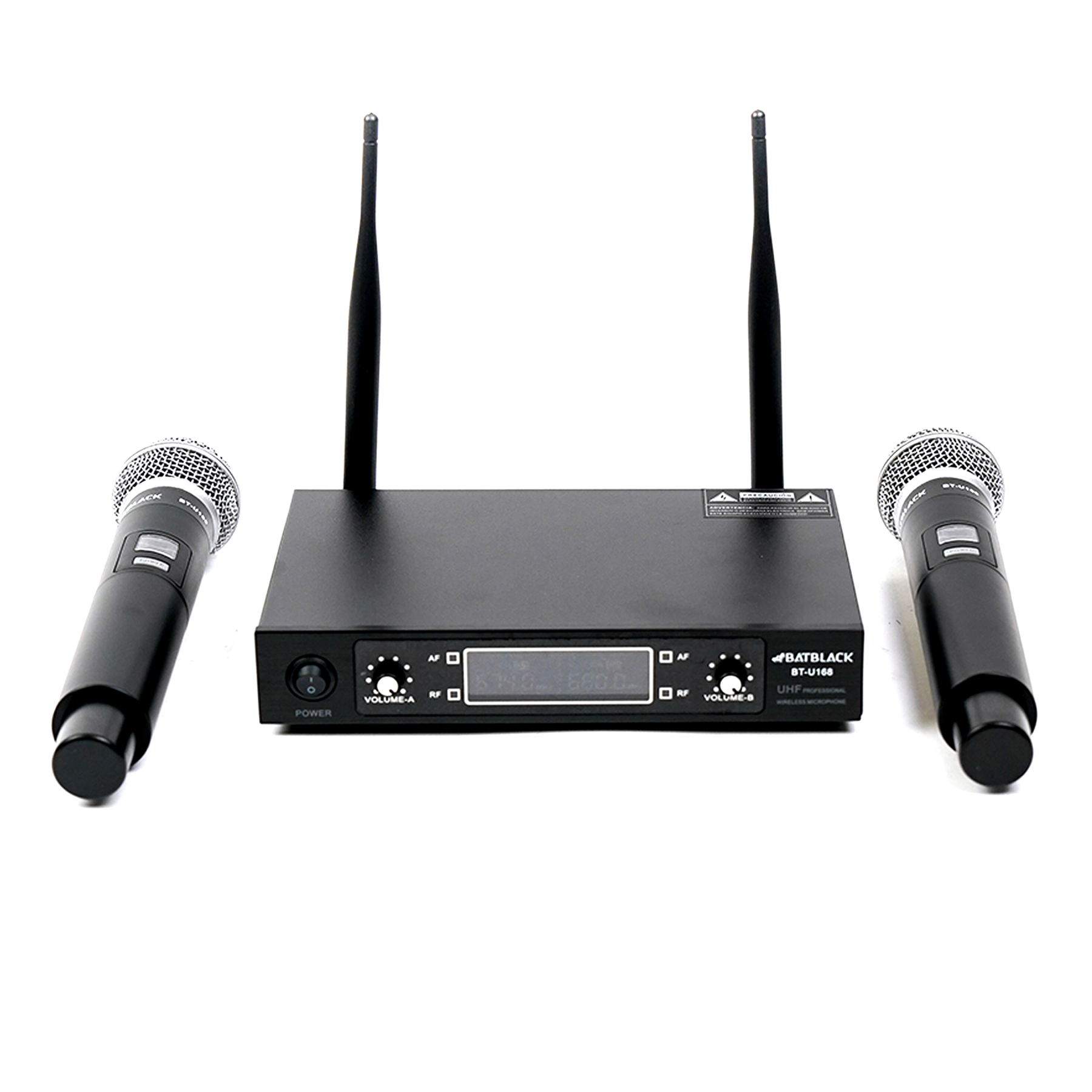 MICRÓFONO PROFESIONAL BATBLACK INALÁMBRICO UHF DOBLE , DOS MICRÓFONOS