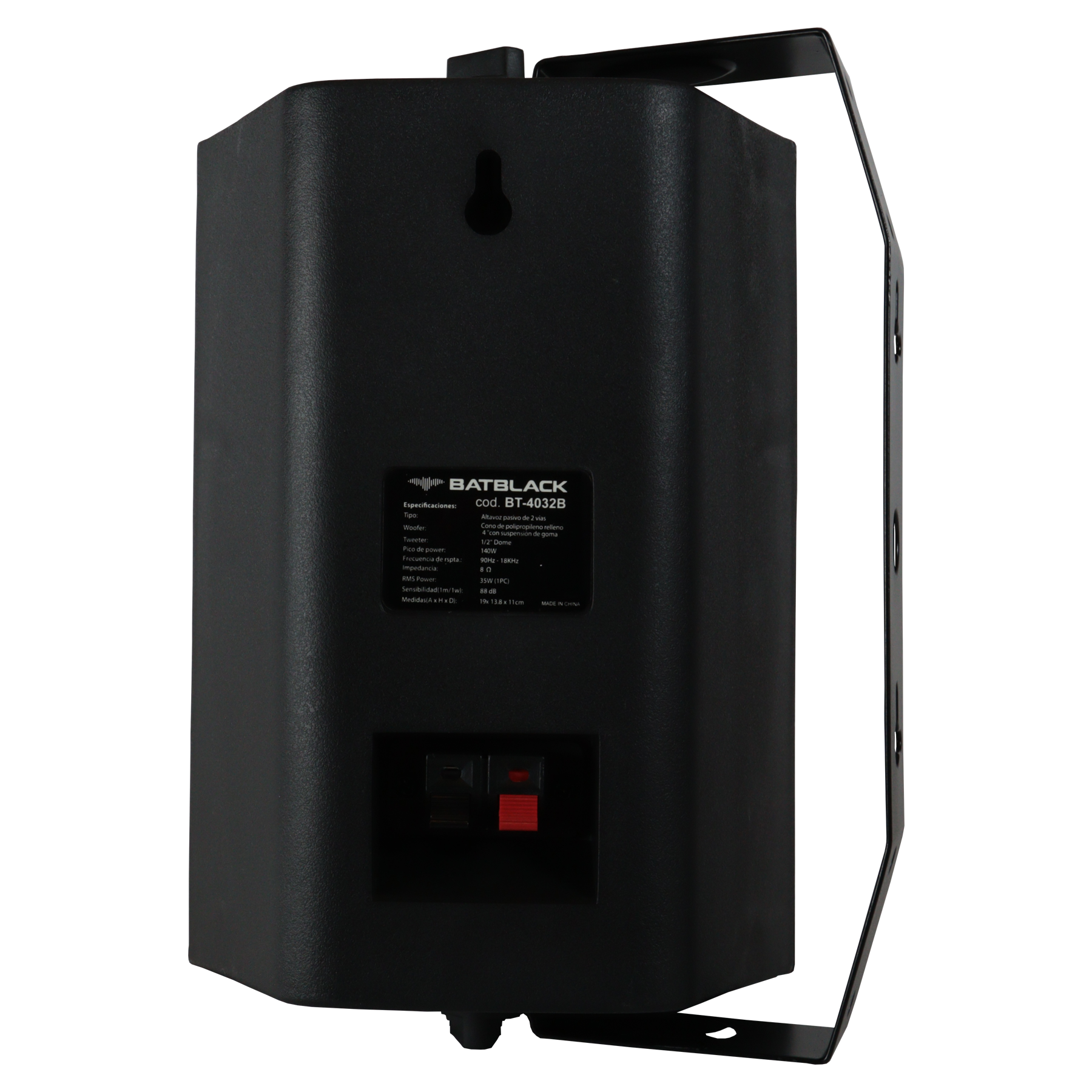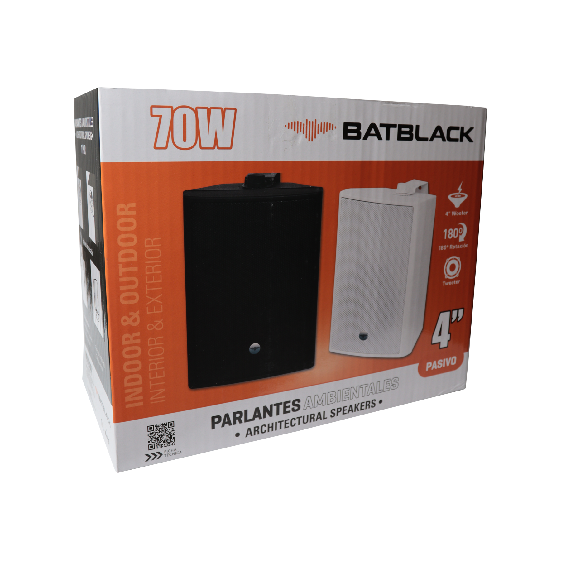 PARLANTE AMBIENTAL BATBLACK 4″ 70W COLOR NEGRO, RACK DE METAL AJUSTABLE