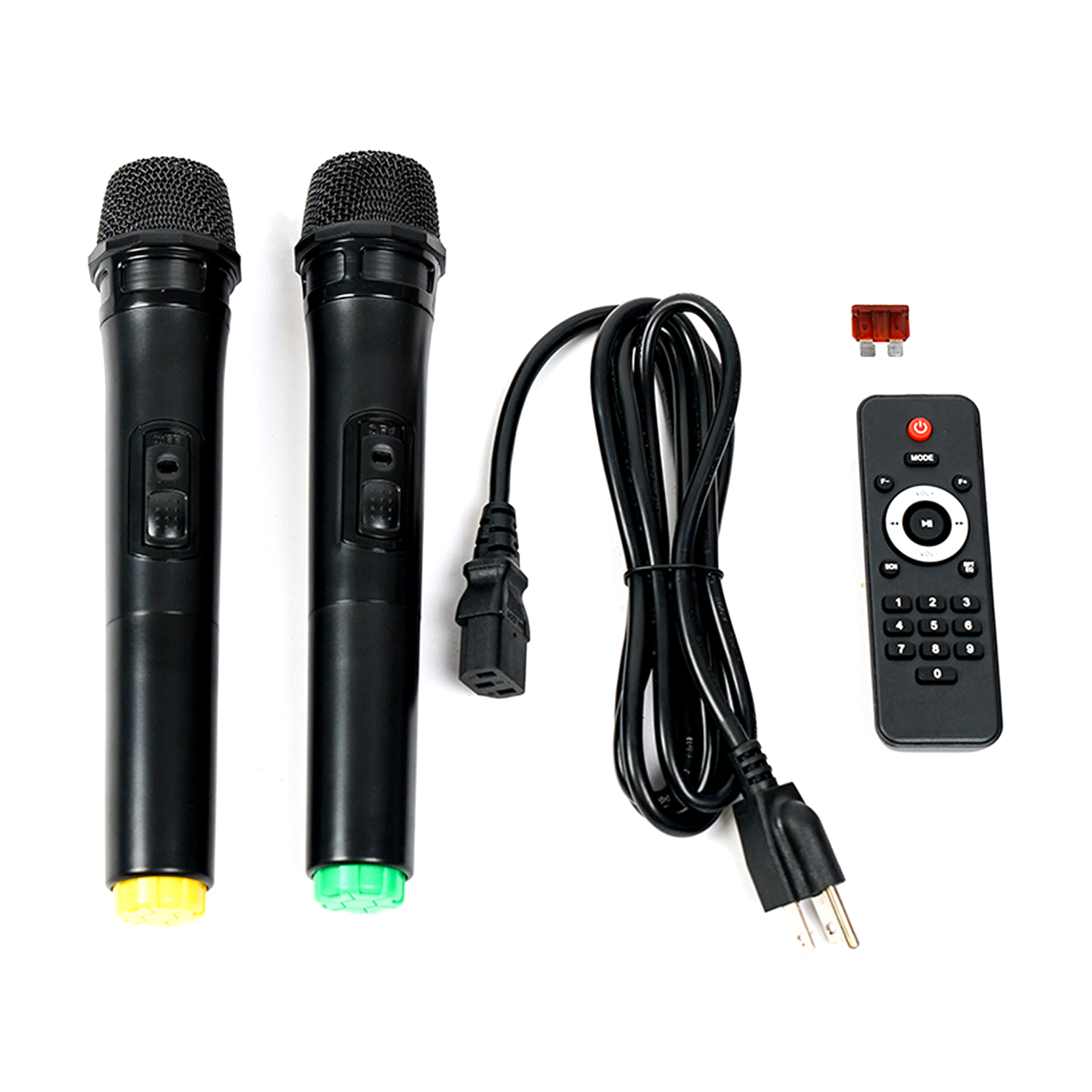 INCLUYE : 2 micrófonos inalámbricos, control remoto y tripode