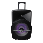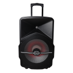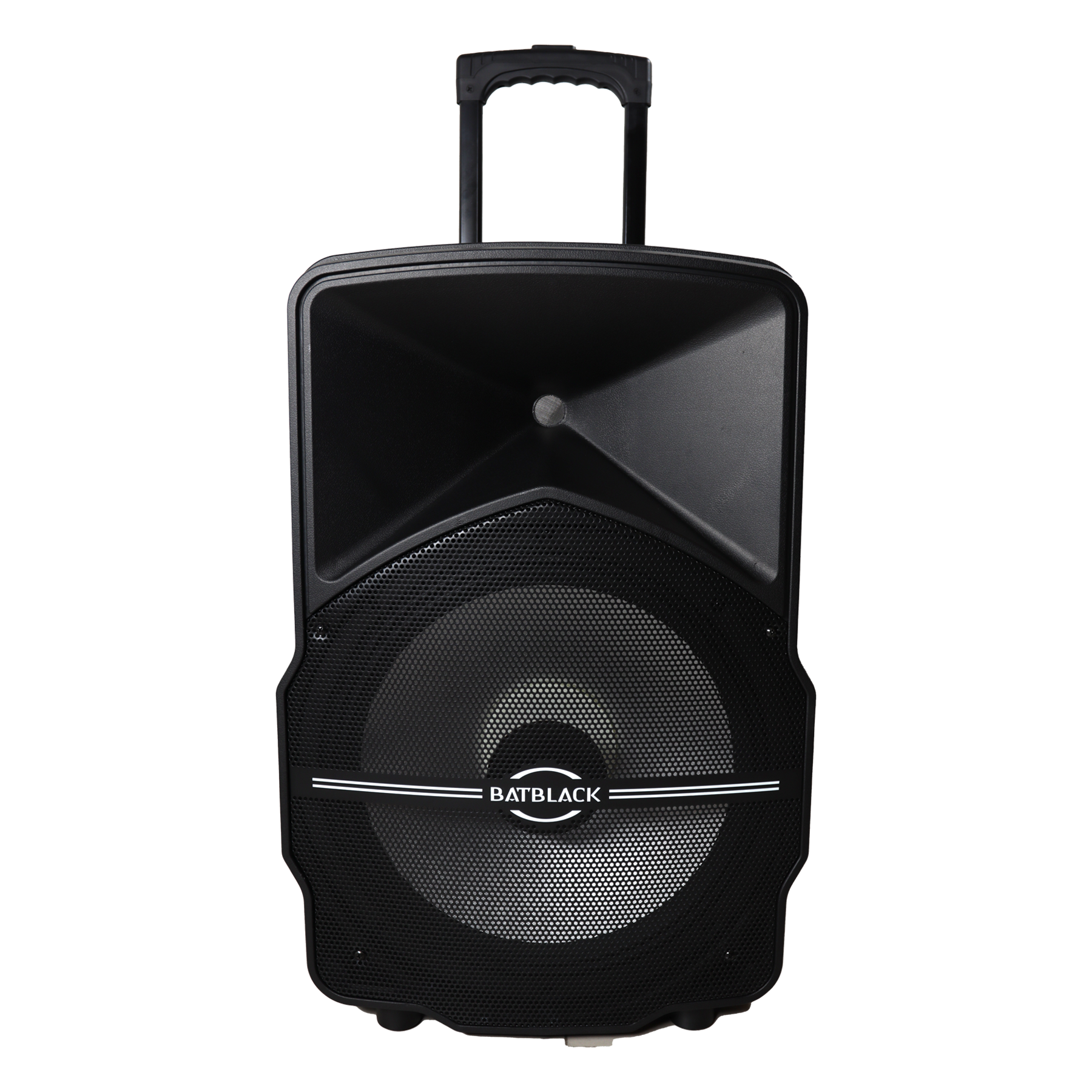 PARLANTE AMPLIFICADO BATBLACK 15″ 3000W CON BT,FM,USB,SD CARD C/2 MICROFONOS INALÁMBRICOS Y PEDESTAL CON BATERIAS 12V – 7AH
